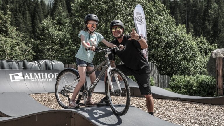 Die Kinder Bike-Schule im Almhof Family Resort & SPA ist für unsere Gäste kostenlos und umfasst folgende Leistungen: